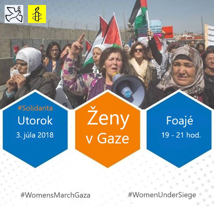 Prečítame si ich výzvu, povieme si o životných podmienkach v pásme Gazy a o pozadí Veľkého pochodu návratu a premietneme si niekoľko krátkych dokumentárnych filmov (v angličtine), ktoré nám priblížia život palestínskych žien pod blokádou tak, ako si ho zväčša nepredstavujeme – nie sú to len dcéry, sestry a matky pasívne trpiace trojnásobným útlakom – zneviditeľňovaním a diskrimináciou v rámci celosvetového patriarchálneho usporiadania, izraelskou blokádou a patriarchátom vlastnej palestínskej komunity – ale aj emancipované ženy, profesionálky a feministky: reportérky, zdravotníčky, vynálezkyne, maliarky, učiteľky, študentky, cyklistky. Aj ony si zaslúžia v našich myšlienkach vystúpiť z tieňa propagandy, stotožňujúcej populáciu pásma Gazy s “militantmi Hamasu” a ostro kontrastujúcej so skutočnosťou, v ktorej tak ako všade na svete približne polovicu populácie tvoria ženy a dievčatá (a špecifikom pásma Gazy je, že 45% populácie predstavujú deti do 14 rokov).