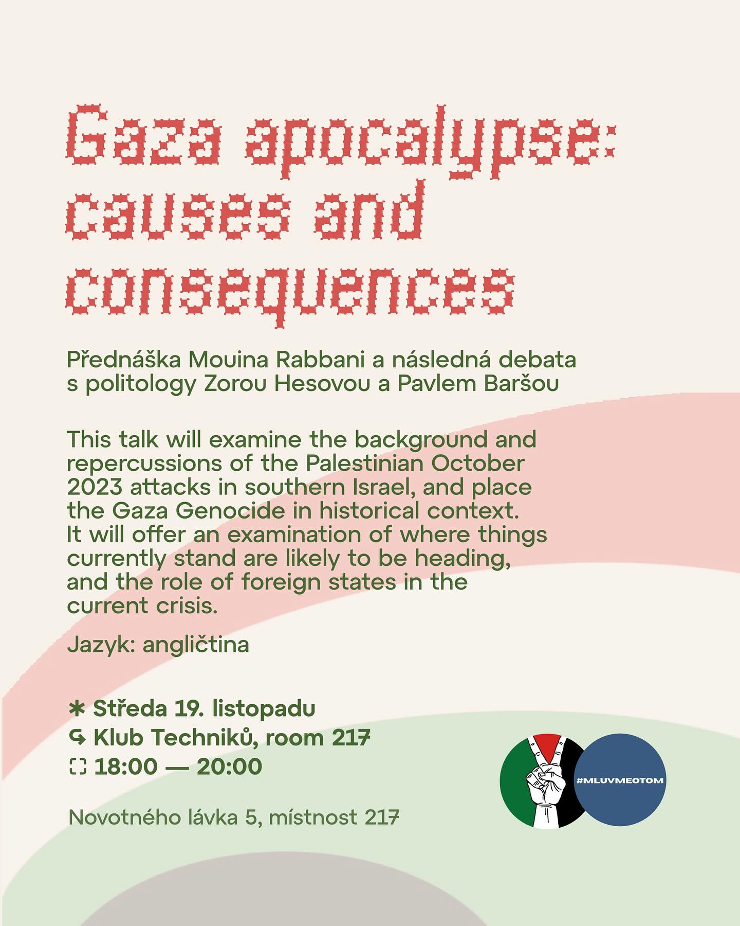 Gaza Apocalypse: Causes and Consequences – 19.11.2025 v Klubu Techniků, místnost 217, 18:00